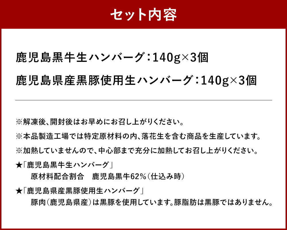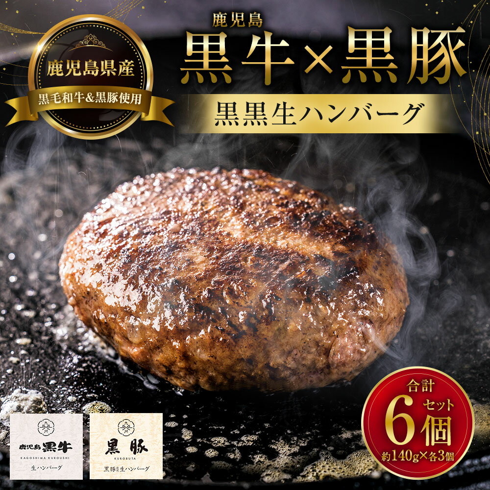 【ふるさと納税】鹿児島黒牛×黒豚 黒黒生ハンバーグ 6個セット(140g×各3個) 計840g 生ハンバーグ ハンバーグ 鹿児島黒牛 黒牛 黒毛和牛 和牛 牛肉 鹿児島黒豚 黒豚 豚肉 食べ比べ セット 詰め合わせ 肉加工品 加工食品 お取り寄せ 冷凍 国産 福岡県 太宰府市 送料無料