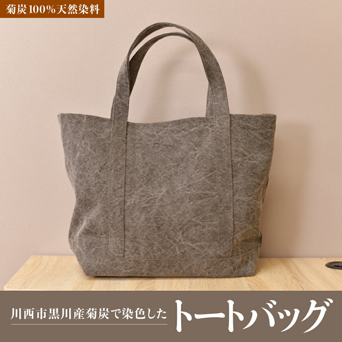 【ふるさと納税】川西市黒川産菊炭で染色したトートバッグ 【ふるさと納税 トートバッグバッグ 鞄 かばん 染色 黒川地区 兵庫県 川西市 送料無料】 KWNDG001