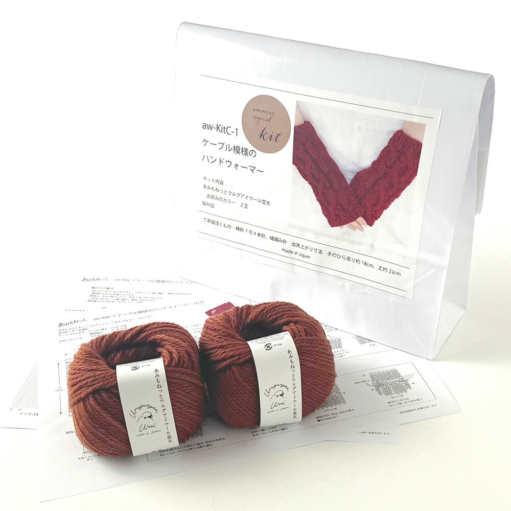 - 【ふるさと納税】毛糸 2玉で編めるケーブル模様のハンドウォーマーキット 10番色 / 編み物キット 指なし手袋 手編み 毛糸 ウール100% 並太毛糸 模様編み 冬小物 手元アイテム ハンドメイド 趣味 手作り 編み図付き 愛知県 No.344