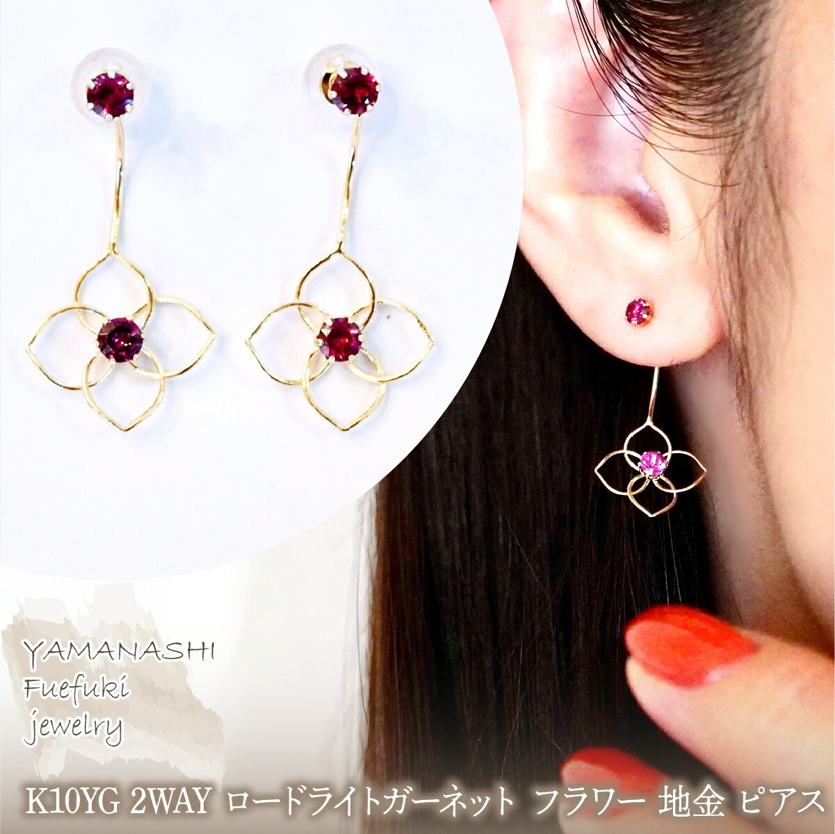 【ふるさと納税】K10YG(10金) イエローゴールド 2WAY 選べる天然石 フラワー 地金 ピアス 保証書付 2158 242-057 ジュエリー アクセサリー 記念日 ギフト プレゼント エレガント 高品質 レディース 誕生石 誕生日 母の日 ふるさと納税 送料無料