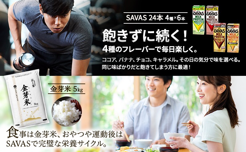 ザバス 4種アソート × 金芽米 5kg 米 プロテイン 24本 セット 明治 meiji 飲料 無洗米 京都 お米 お得 ダイエット 低糖質 筋トレ タンパク質 健康 低カロリー 糖質オフ 高タンパク 脂肪0 期間限定 常温 京都府 京田辺市