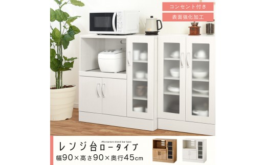【完成品+設置付き】キッチン収納〔レンジ台・ロータイプ〕(ナチュラル)レンジ台 ナチュラル 幅90 スライドテーブル付き スリム 食器棚 木製 レンジ 収納 炊飯器ラック キッチン収納 キッチン家電 KKONCBJ01110-0-NA