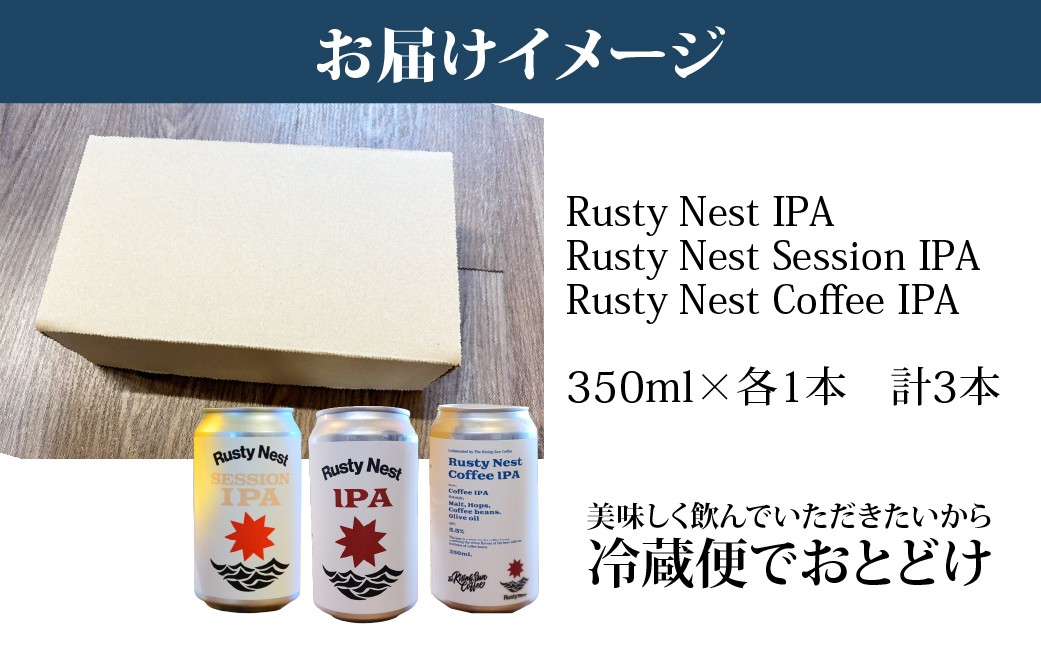 - 【4月上旬より順次発送予定】 クラフトビール「Rusty Nest IPAシリーズ」飲み比べ3種セット350ml×各1本 計3本 BJ005