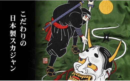 伊賀くみひも 忍者スカジャン(グリーン×ベージュ)男女兼用【タイトフィット/サイズ選択可】