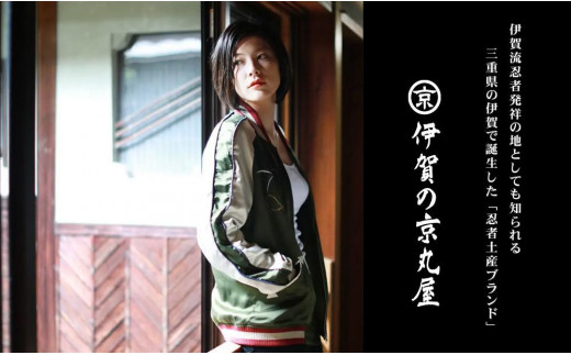 - 伊賀くみひも 忍者スカジャン(グリーン×ベージュ)男女兼用【タイトフィット/サイズ選択可】