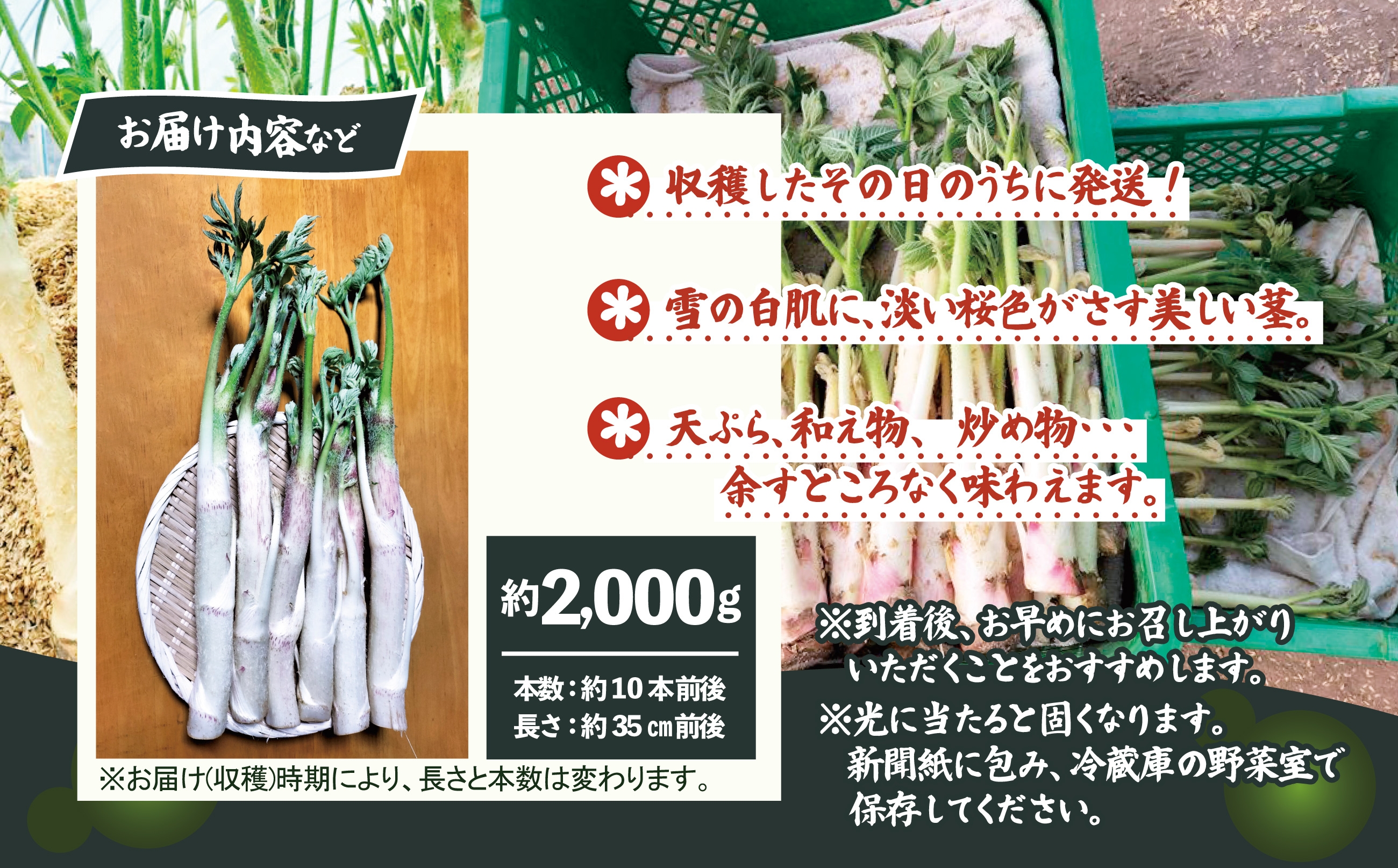 ウド 約2000g 北国の春の香りをお届けします 120P3203 / 東北 秋田 大館 山菜 山 自然 春の山菜 おひたし 酢味噌和え ウド北国の春の香り 天ぷら うどん どうぜん ほんうど やまくじら ヤマウド