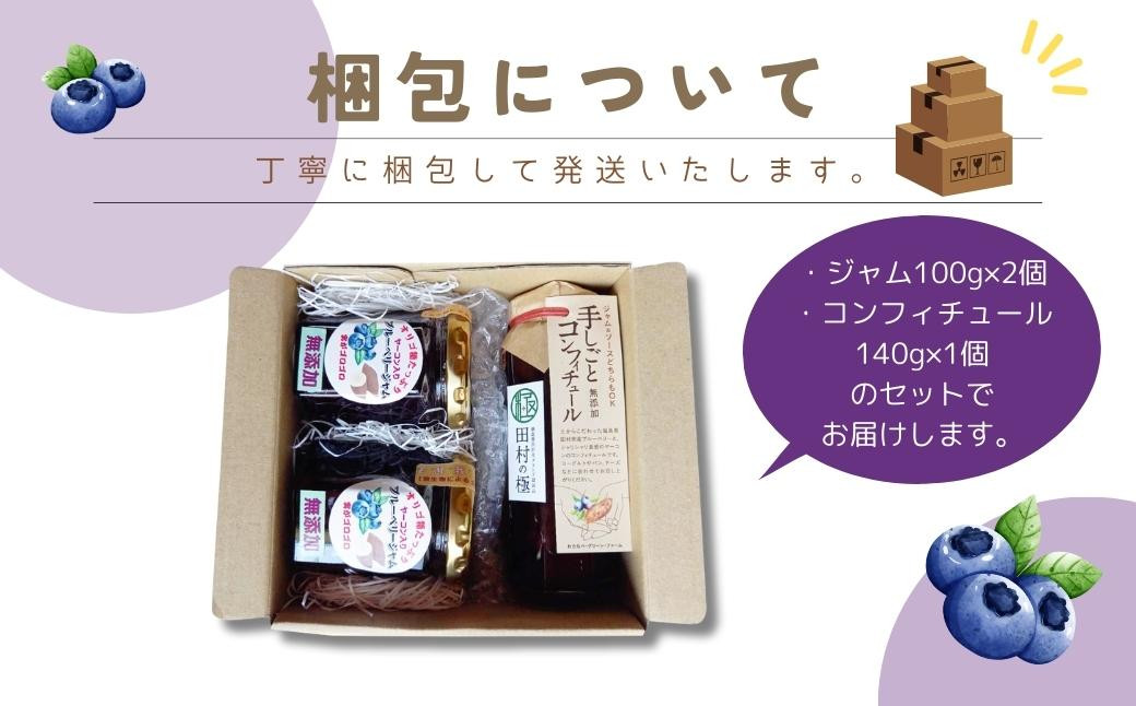 ブルーベリー セット (ブルーベリージャム 2本 手しごと コンフィチュール 1本 詰合せ) 果物 フルーツ 手作り ヤーコン 健康 腸活 プレゼント ギフト 贈答 田村の極 福島県 田村市 福島 田村 ふくしま たむら わたなべ・グリーンファーム