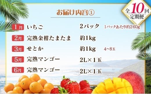 - 【10回定期便】旬 人気 フルーツ 南国宮崎産 マンゴー 金柑たまたま シャインマスカット ピオーネ いちご みかん 梨 メロン 柑橘 きんかん ぶどう 果物 詰め合わせ 宮崎県 九州<E-2コース M600>
