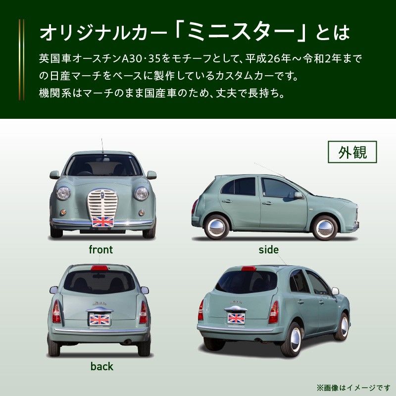 - 国産車ベースの英国車風オリジナルカー【ミニスター】お好きな色に全塗装 令和2年式16,523km ボディコーティング:あり ホイール:通常(黒色) カスタムカー レトロ風 自動車 かわいい 車