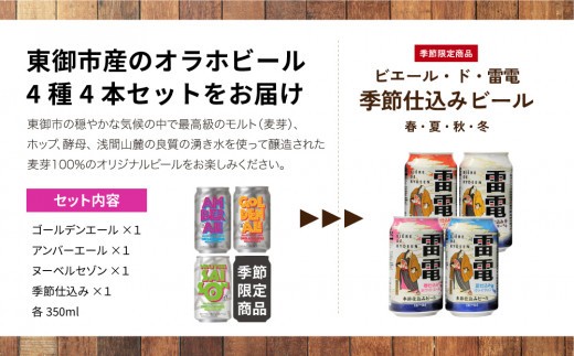 - 【クラフトビール】季節の4本セット(ゴールデンエール、アンバーエール、ヌーベルセゾン、季節仕込み)各1本|オラホビール お試し
