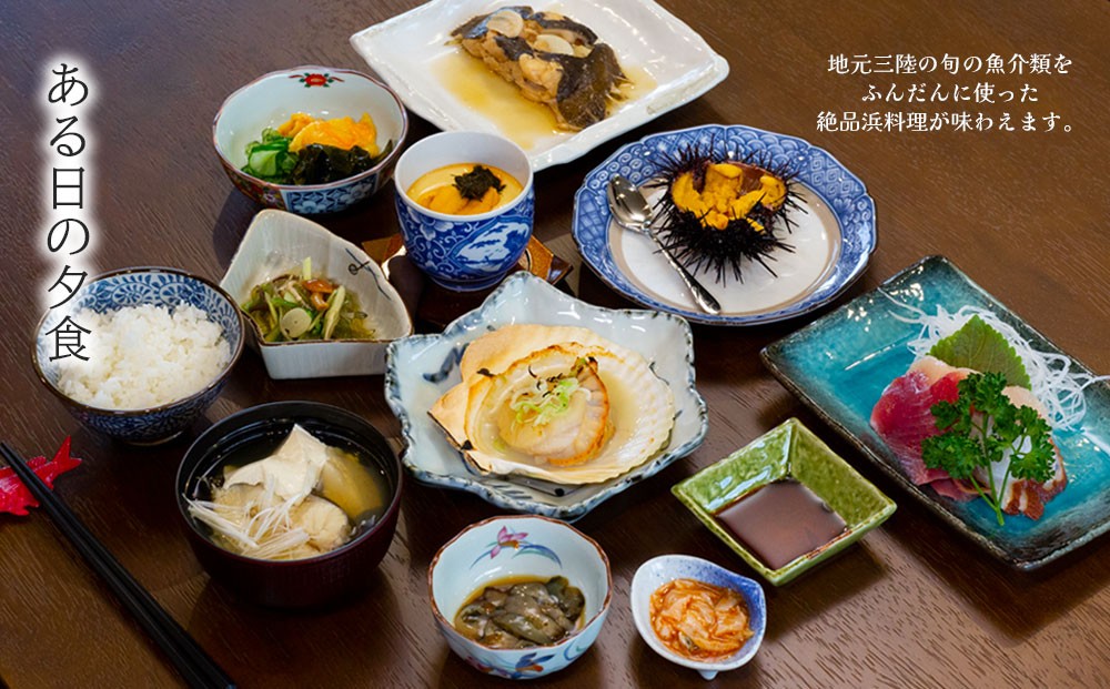fc-44-023 【御箱崎の宿】 一棟貸しのお宿で三陸絶品浜料理のお食事! ペア宿泊券 (1泊2食付プラン) かまいしDMC