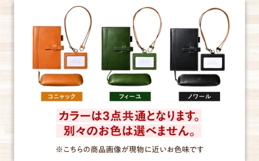 【3点セット】本革バイブルサイズシステム手帳(15mmリング)・IDケース横型(ネックストラップ付)・バゲットペンケース グレージュ 滋賀県長浜市/株式会社ブラン・クチュール [AQAY523]