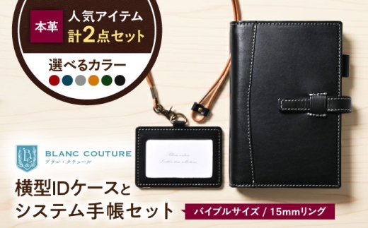 - 本革バイブルサイズシステム手帳(15mmリング)とIDケース横型(ネックストラップ付)セット マリーヌ 滋賀県長浜市/株式会社ブラン・クチュール [AQAY474]