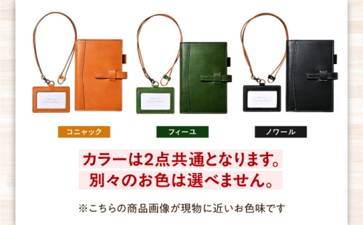 本革バイブルサイズシステム手帳(15mmリング)とIDケース横型(ネックストラップ付)セット マリーヌ 滋賀県長浜市/株式会社ブラン・クチュール [AQAY474]