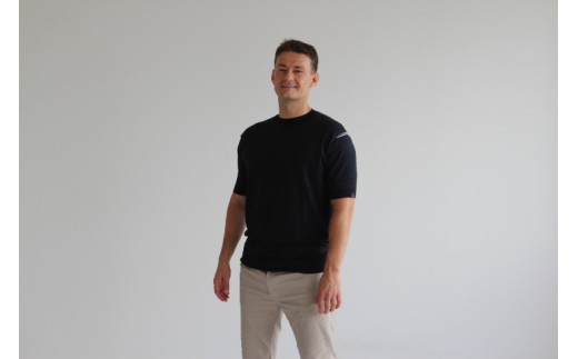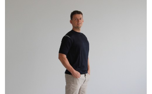 - 究極の贅沢シルク100%洗えるメンズ半袖Vガゼットデザインクルーネックニットウェア ネイビーLサイズ メンズ | 半袖 ニット ウォッシャブル 春夏秋冬 春 夏 秋 冬 シンプル 無地 プレゼント ギフト 父の日 新潟県 五泉市 有限会社アスリート