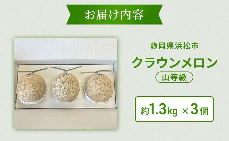 【2026年5月6月限定出荷】 こだわり クラウンメロン 3個 山等級 約1.3kg クラウン メロン 贈答 高級 フルーツ 果物 静岡 浜松市【配送不可:離島】 [№5360-1006]