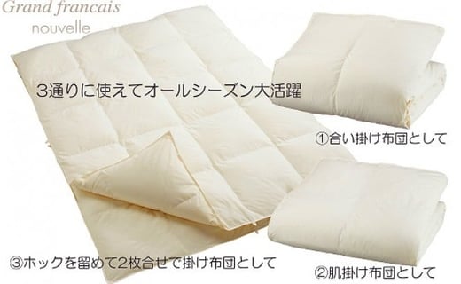<シングルサイズ>オールシーズン2枚合せ羽毛布団ダウン90% 抗菌防臭羽毛使用 CILシルバーラベル【1232079】