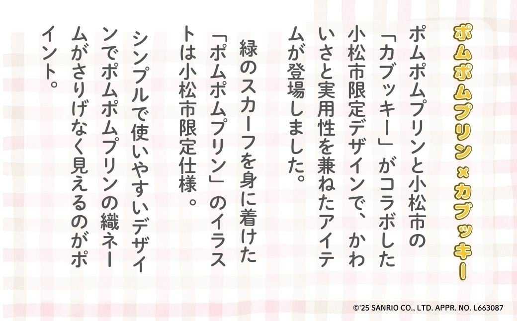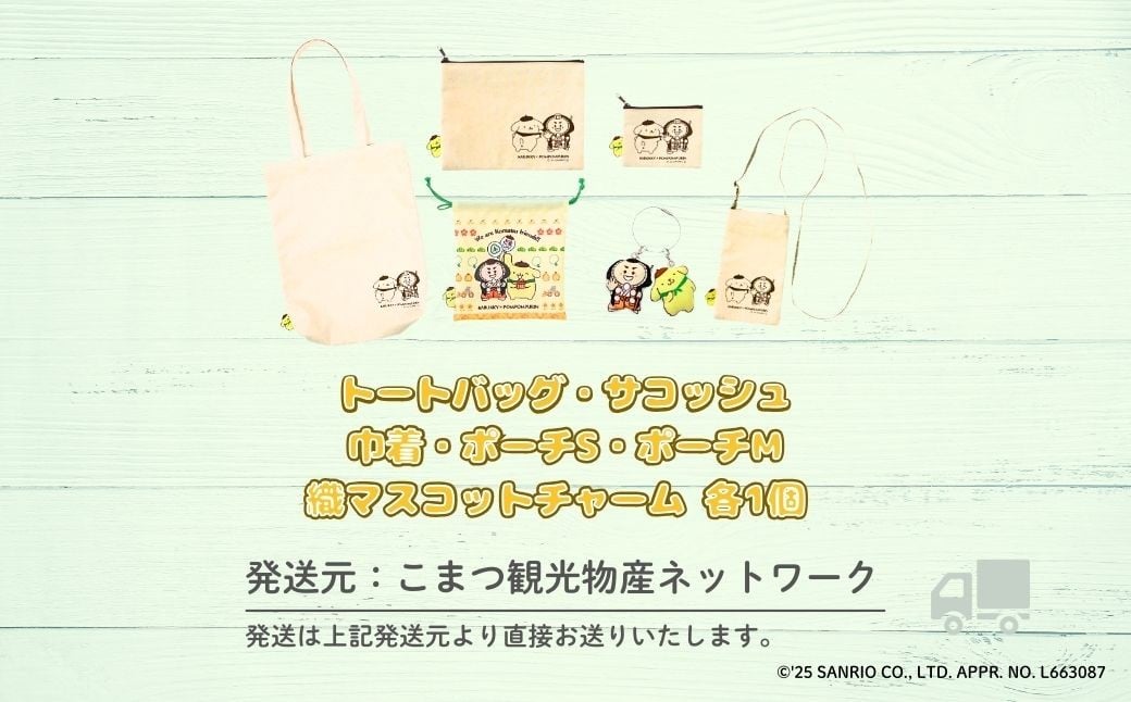 - 【小松市限定デザイン】 ポムポムプリン×カブッキー 小松市オリジナルグッズスペシャルセット(トートバッグ・織マスコットチャーム・サコッシュ・ポーチM・ポーチS・巾着) サンリオ キャラクター 子供の日 こどもの日 端午の節句 | 石川県 小松市