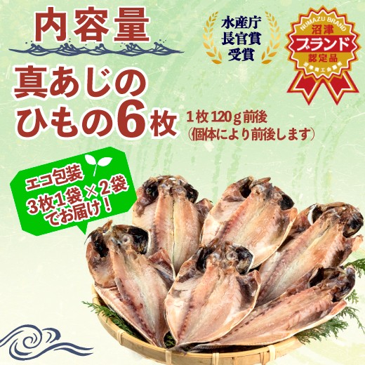 - 真 あじ 干物 6枚 セット 詰め合わせ 鯵 国産 冷凍 アジ 干物 ひもの 人気 静岡 沼津 静岡県 美味しい エコ包装 簡易包装