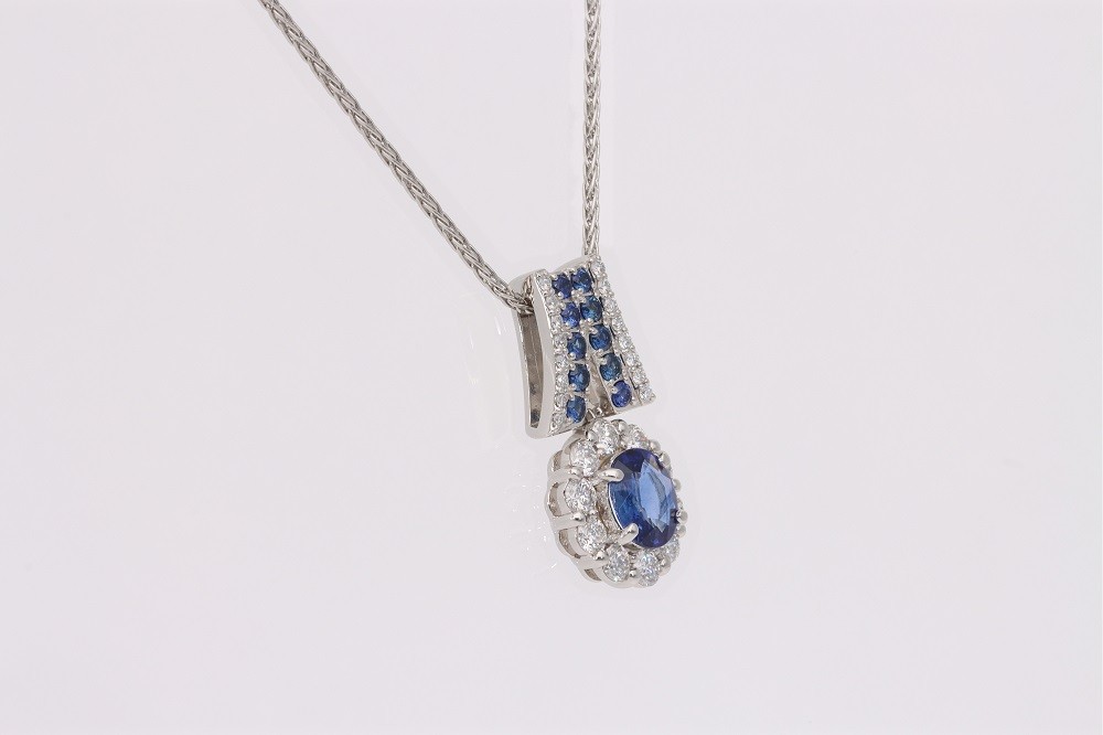 - Pt999 純プラチナ ブルーサファイア ダイヤ ネックレス AQ-313(SJ-57)