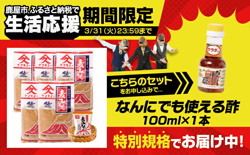- 【ふるさと納税】【期間限定 生活応援】麦みそセット(麦みそ1kg×5個、即席みそ汁9.5g×2食)鹿児島特有の麦麹をふんだんに使った麦味噌と麦みそに油揚げ・長ねぎ・わかめを加え、フリーズドライしたお味噌汁 朝食 夕食 お弁当や旅先にも!【久保醸造合名会社】