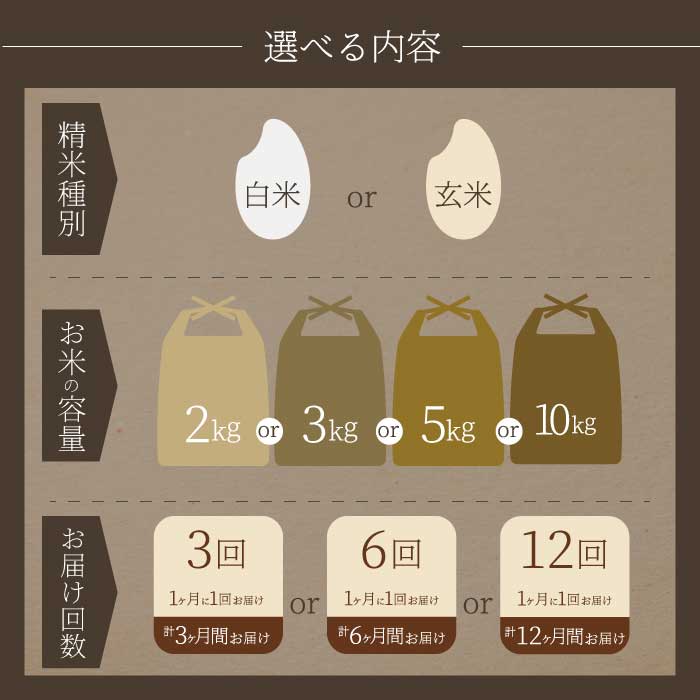 - 【ふるさと納税】《令和7年》 みはら高原米 浮城 ~ こしひかり ~ <定期便> 選べる精米種別・容量・回数 白米または玄米 2~10kg 3か月(3回)または6か月(6回) 、12か月(12回) コシヒカリ お米 米 精米 ごはん ご飯 広島県 三原市 220005-r
