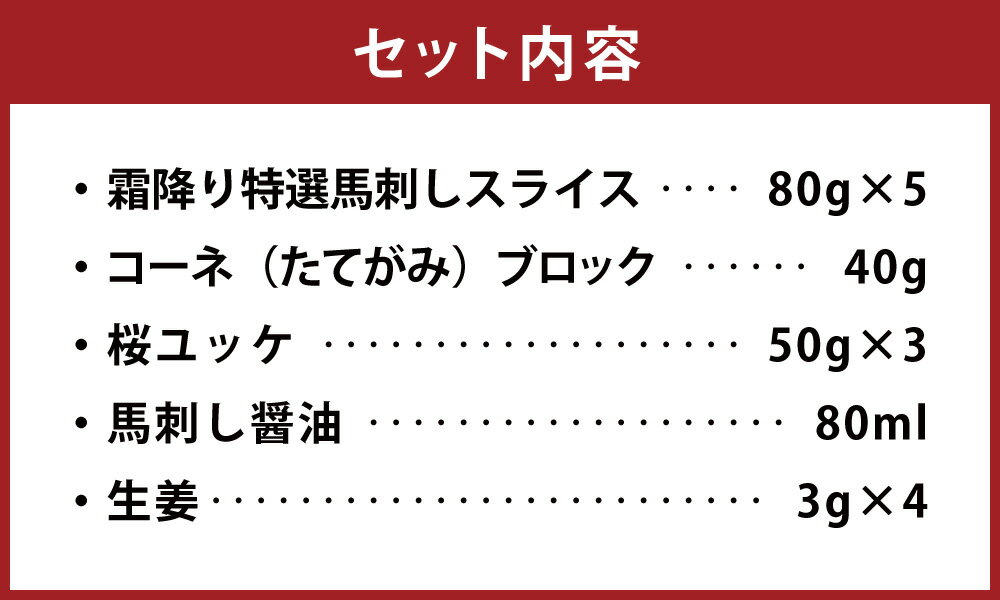 【ふるさと納税】国産 ご家族で楽しめる「さくらセット」5種 合計約380g 上赤身 馬刺し 霜降り 大トロ ロース たてがみ ふたえご ユッケ タレ 付 馬肉 桜肉 冷凍 送料無料