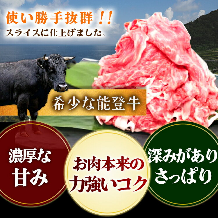 【ふるさと納税】\選べる内容量/石川県産 能登牛特選スライス(切り落とし)|牛肉 4~5等級 切り落とし 国産 600g 1kg スライス 和牛 冷凍 冷凍配送 国産 牛丼 肉じゃが すき焼き しゃぶしゃぶ 鍋 七尾市