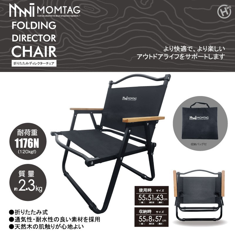 - 【ふるさと納税】【MOMTAG】折りたたみディレクターチェア 1脚 収納バッグ付き 約2.3kg 折りたたみ式 椅子 イス チェア いす 通気性 耐水性 天然木 福岡県北九州市