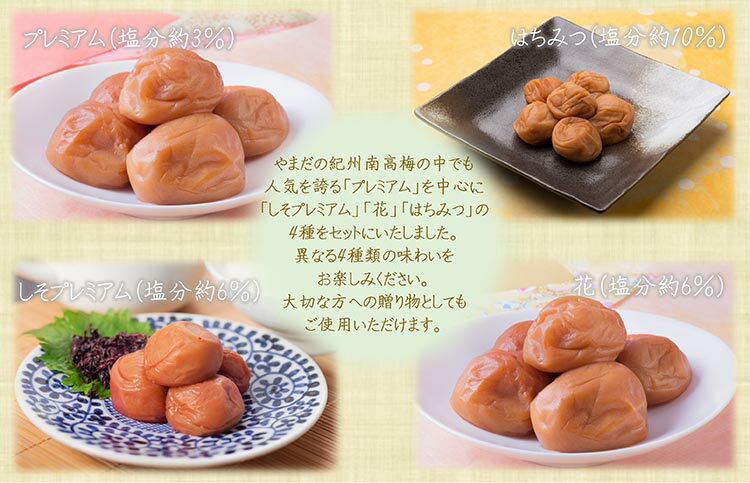【ふるさと納税】\選べる配送回数/【定期便】厳選紀州南高梅四種詰合せ(各200g)