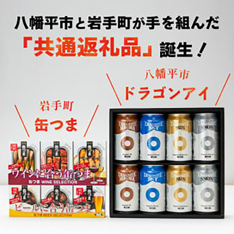 - 【岩手町×八幡平市 共通返礼品】おつまみ缶詰とクラフトビール みちのくご褒美セット ビール クラフトビール 地ビール ドラゴンアイ 缶つま 缶詰 岩手缶詰 かき燻製 牛タン焼き 豚軟骨 オイルサーディン つまみ 酒 ギフト 贈り物 父の日 晩酌 セット 岩手町 八幡平市 カメイ 暁ブルワリー【価格改定】