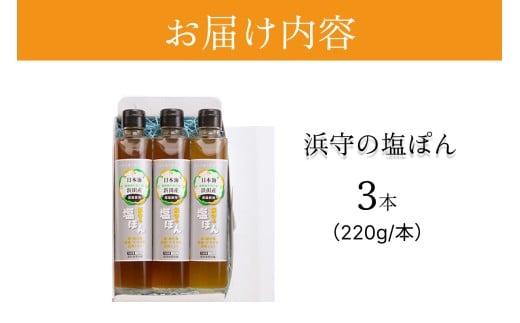 - 浜守の塩ぽん 3本セット 調味料 ポン酢 塩風味 ゆず さっぱり あっさり 【210_0002】