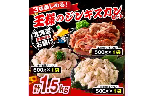 - 【スピード発送対応】王様のジンギスカンセット【王様のジンギスカン(味付きラムロース)+味付き豚ホルモン+味付き豚ナンコツ 各1袋 計1.5kg】