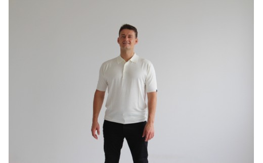 - 究極の贅沢シルク100%洗えるメンズ半袖ポロニットウェア ホワイトMサイズ メンズ | 半袖 ニット ウォッシャブル 春夏秋冬 春 夏 秋 冬 シンプル 無地 プレゼント ギフト 父の日 新潟県 五泉市 有限会社アスリート