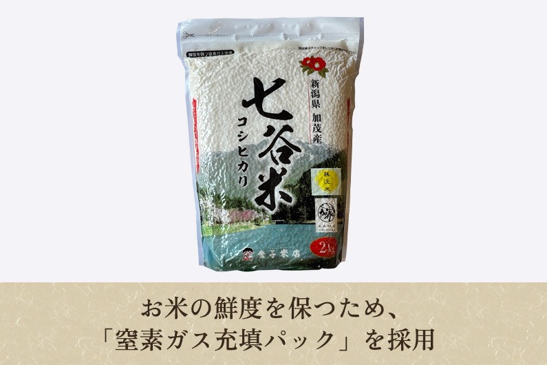 【令和7年産】老舗米穀店が厳選 新潟県加茂市産コシヒカリ「七谷米」無洗米4kg(2kg×2)〈順次出荷〉 従来品種 窒素ガス充填パックで鮮度長持ち 金子米店