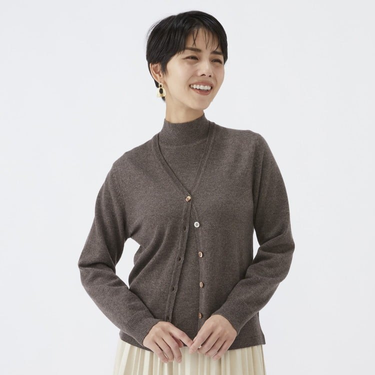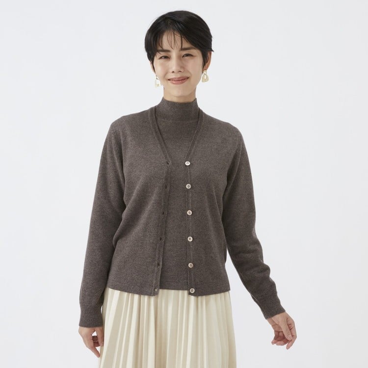 - 日本製 カシミヤ100% レディース Vカーディガン モカブラウン 90805