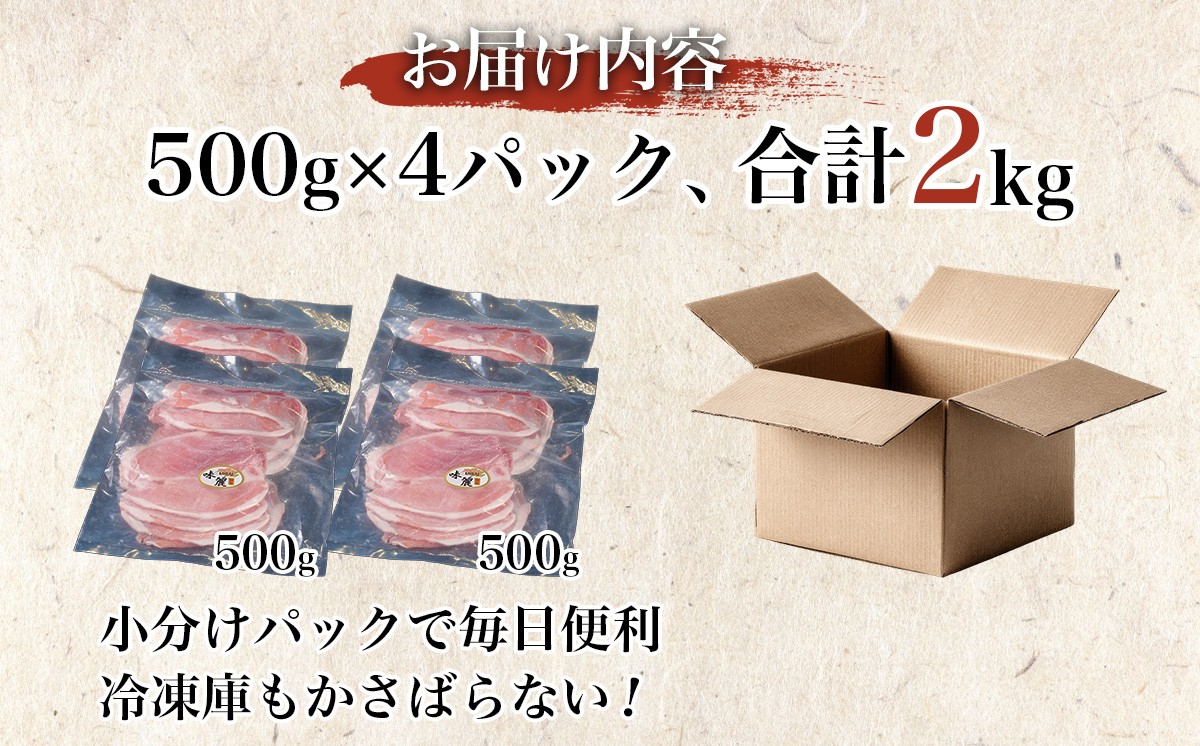 - みらい豚 もも肉 スライス 2kg ( 500g × 4P ) │ 豚肉 豚 小分け もも ぶた肉 冷凍 銘柄豚 村下商事 茨城県 つくば市