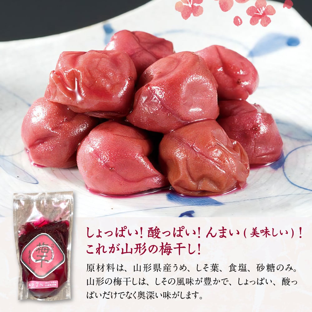 【ふるさと納税】【減塩】山形県産 「谷沢梅」の 梅干し セット 計640g 保存料・着色料不使用 / お取り寄せ 減塩 塩分控えめ 三年物 弁当 おにぎり 国産 伝統野菜 梅干しセット 保存食 常温 しそ梅 手作り 伝統の味 酸っぱい すっぱい 甘くない うめ ウメ 鴨田太平商店