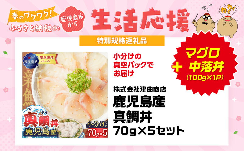 【ふるさと納税】【期間限定 生活応援】鹿児島産 真鯛丼 70g×5セット 魚 刺身 鯛 真鯛 タイ 真ダイ カット済 海鮮 丼 鯛茶漬け カルパッチョ 手巻き寿司 冷凍 簡単 便利 新鮮 鮮度 ノンドリップ 急速冷凍 真空 津曲商店 鹿児島 おすすめ ランキング プレゼント ギフト