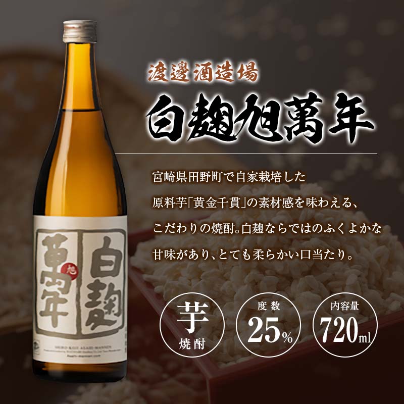 【ふるさと納税】宮崎県 芋・米焼酎「白麹旭萬年 720ml」&「暁 900ml」 25度 2本セット