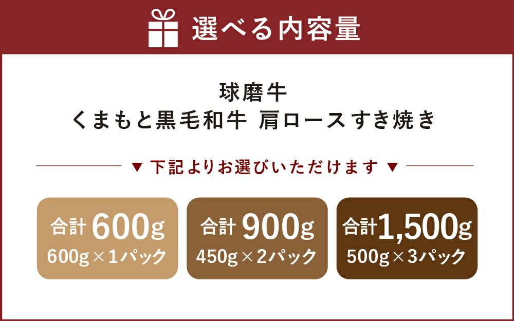 【ふるさと納税】厳選 くまもと黒毛和牛 球磨牛 肩ロース すき焼き用 (600g / 900g(450g×2パック) / 1.5kg(500g×3パック)) <選べる容量> 牛肉 牛 ぎゅうにく うし にく お肉 肉 国産牛 国産 和牛 黒毛和牛 熊本県産 熊本県 あさぎり町 冷凍