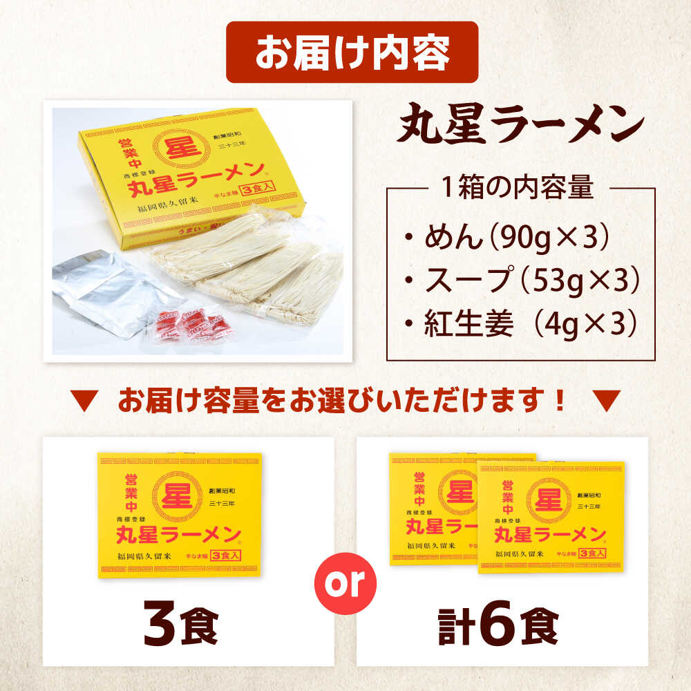 - 【ふるさと納税】【選べる容量】丸星ラーメン久留米 3食セット 1箱 or 2箱【豚骨ラーメン】 桂川町/株式会社木村食品[ADCG018]