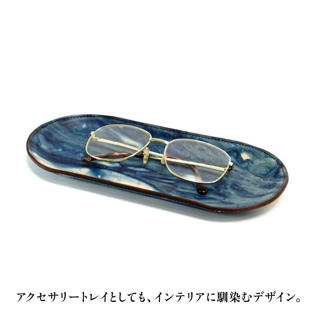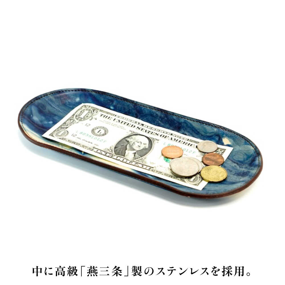 【ふるさと納税】レザートレイ 「プラトー」 薄藍 瀬戸内の空 天然藍染め・福山レザー 自社一貫製造 おすすめ 人気 インテリア 雑貨 経年変化 ハンドメイド コイントレイ 本革 レザー トレイ 小物入れ おしゃれ 釣り銭トレイ 広島県福山市/株式会社サード[BACM024]