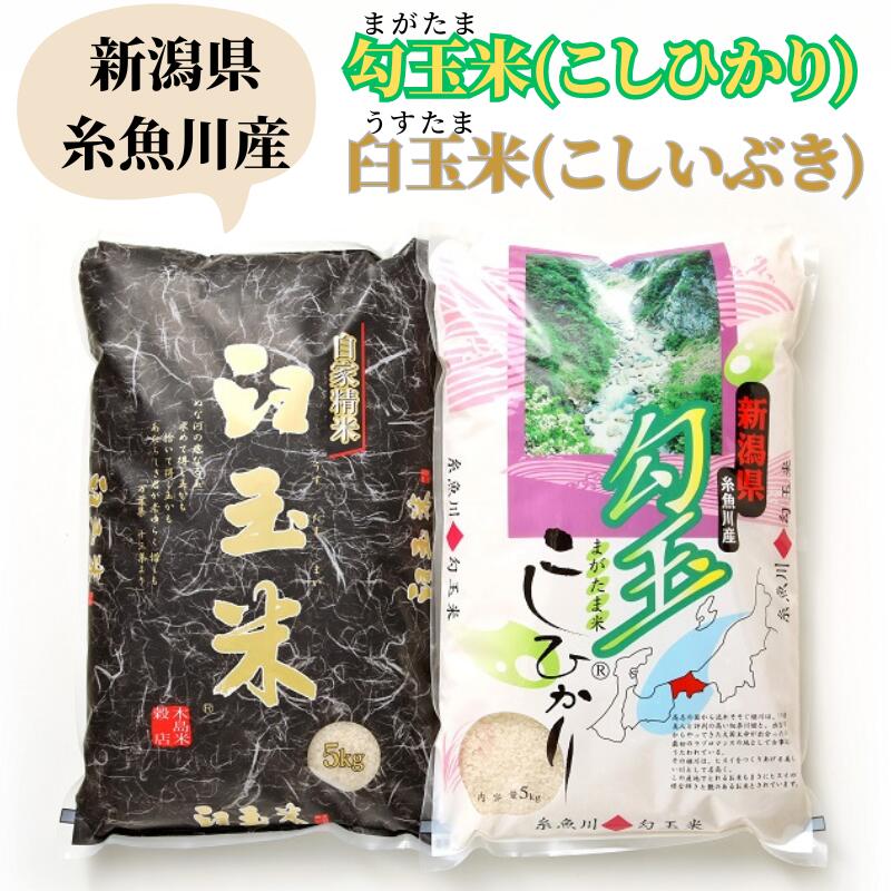 - 【ふるさと納税】米 食べ比べ 新米【令和7年産 新米】【6ヶ月定期便】新潟産コシヒカリ・こしいぶき 各5kg 食べ比べ 計10kg×6回 毎月お届け 全60kg 勾玉米 臼玉米 精米 白米 新潟県 糸魚川市 おにぎり お弁当 おすすめ 人気 美味しい 2025年 6か月 定期便 木島米穀店