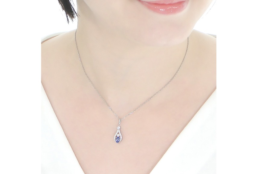 - ペンダント ネックレス PT900 プラチナ 0.17ct ダイヤモンド タンザナイト しずく つゆ型 ミル アンティーク誕生石 大粒 ジュエリー 【f253-pt-ta】 [オーダーメイドジュエリーメイ 山梨県 韮崎市 20745065]