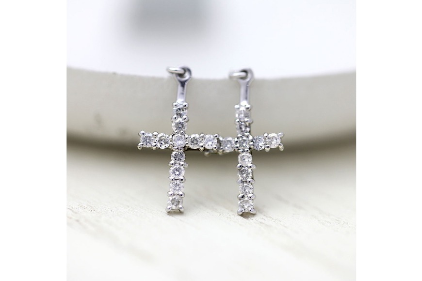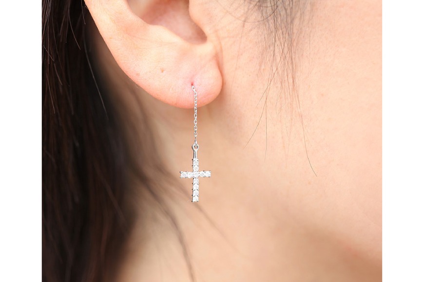 ピアス プラチナ PT900 ダイヤモンド 0.4ct クロス 十字架モチーフ 揺れる チェーン 両耳用【f089-pt】 [株式会社オーダーメイドジュエリーメイ 山梨県 韮崎市 20742944] アクセサリー ジュエリー アクセ