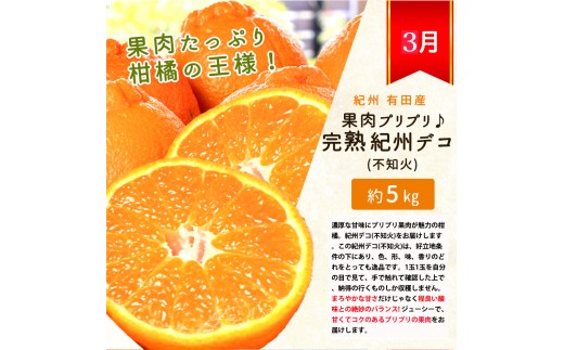 - 【発送月固定定期便】紀州和歌山産旬のフルーツセット(いちご4P・ポンカン・紀州デコ約5kg)全3回 【tkb450】