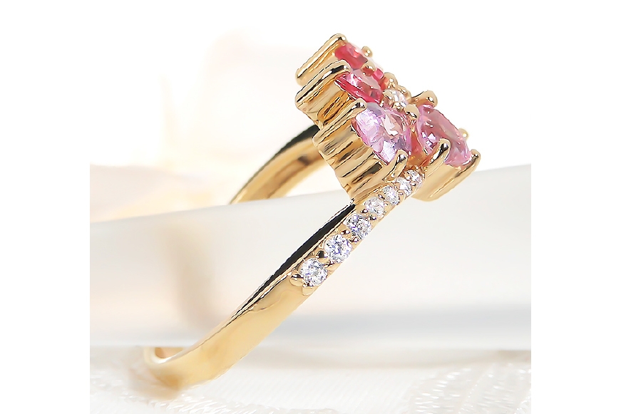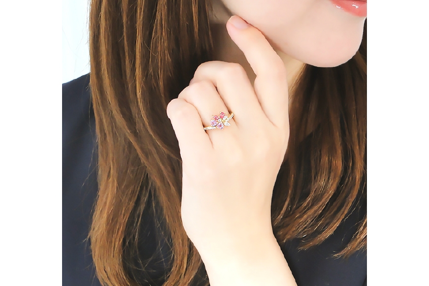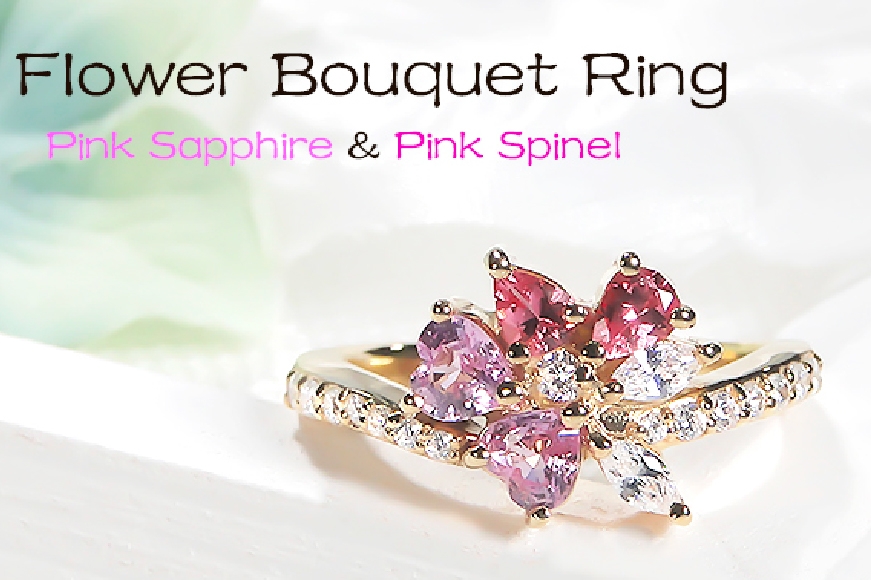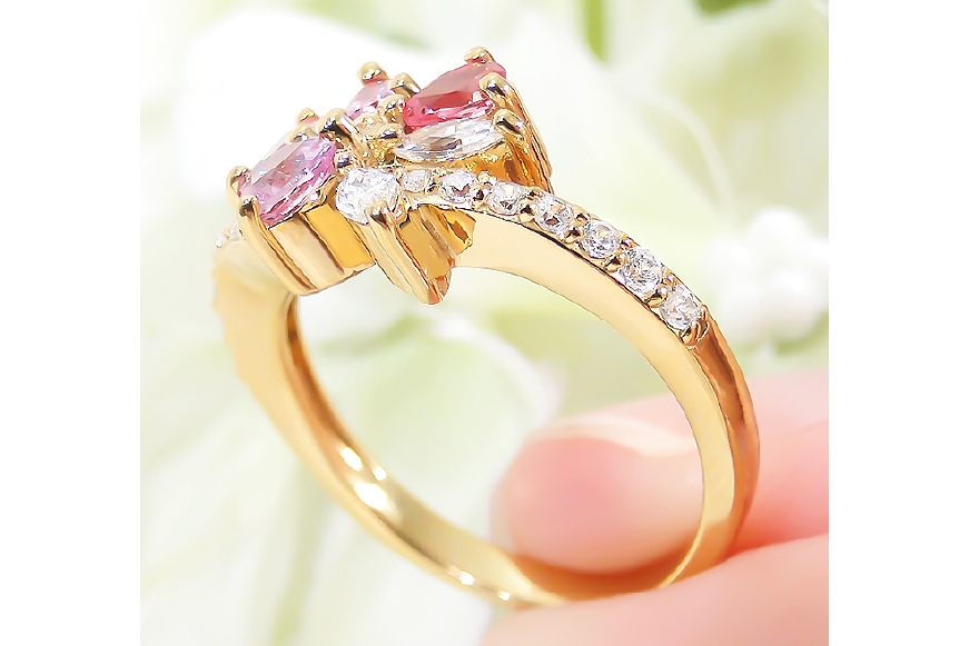 指輪 K18YG イエローゴールド ダイヤモンド 0.3ct ピンクサファイア ピンクスピネル フラワー 花束 ブーケ レディース リング カラフル 誕生石 【f283-k18yg-psp】 ジュエリー アクセ アクセサリー [オーダーメイドジュエリーメイ 山梨県 韮崎市 20745216]
