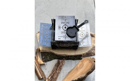 - 3WAY焚火BOXオルテガ柄 スタンダードセット+グリル鉄板Lオルテガ柄4.5mm厚(オプション品)