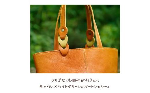 - トートバッグ ミニ キャメル×ライトグリーン レザー バッグ 鞄 かばん カバン レディース メンズ おでかけ おしゃれ おすすめ 贈答 ギフト プレゼント お祝い 贈り物 HARUHINO
